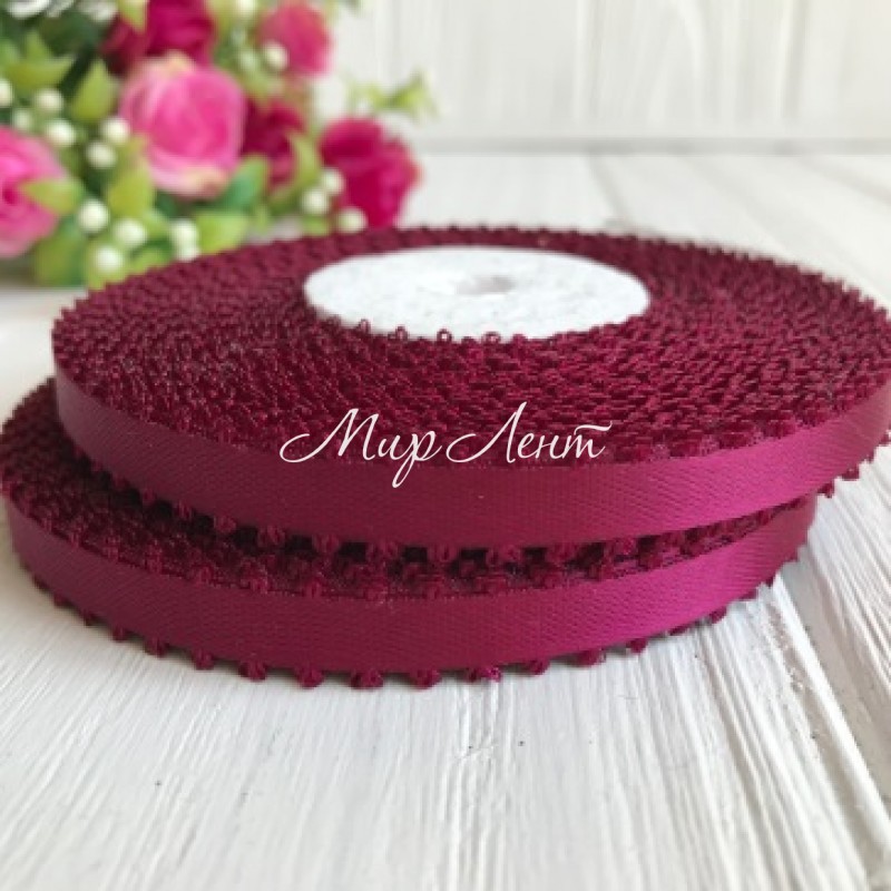 Атлас двосторонній з петельками 0,6 см, вишневий, рулон 20 ярдів