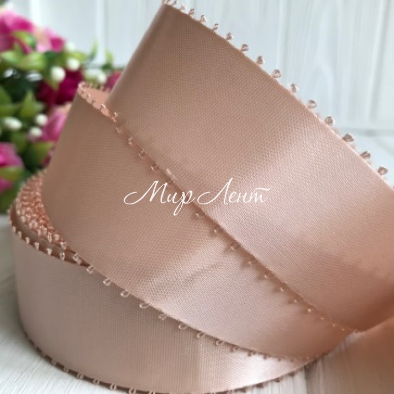 Атлас двосторонній з петельками 2,5 см, бежевий, метр