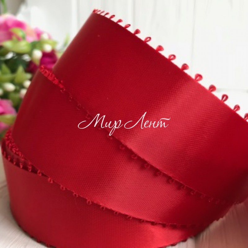 Атлас двосторонній з петельками 2,5 см, червоний, метр