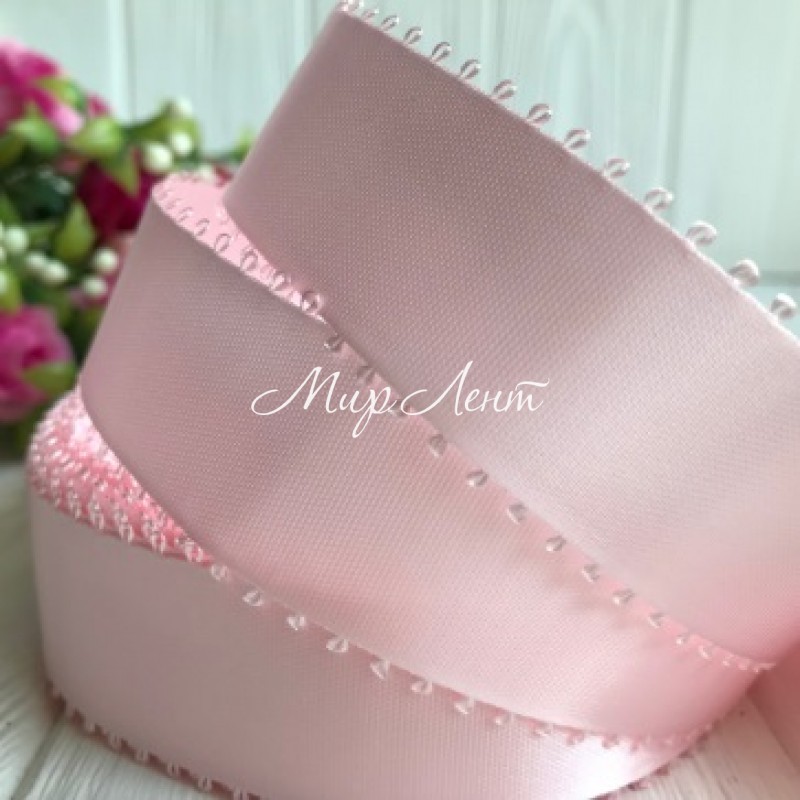 Атлас двосторонній з петельками 2,5 см, світло-рожевий, метр