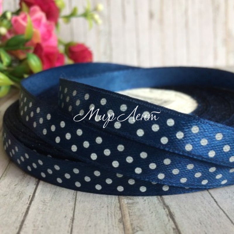 Атлас горох 0,9 см, сапфіровий, рулон 45 м