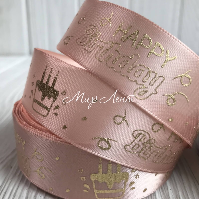 Атлас Happy Birthday, 2,5 см, світло-рожевий, метр