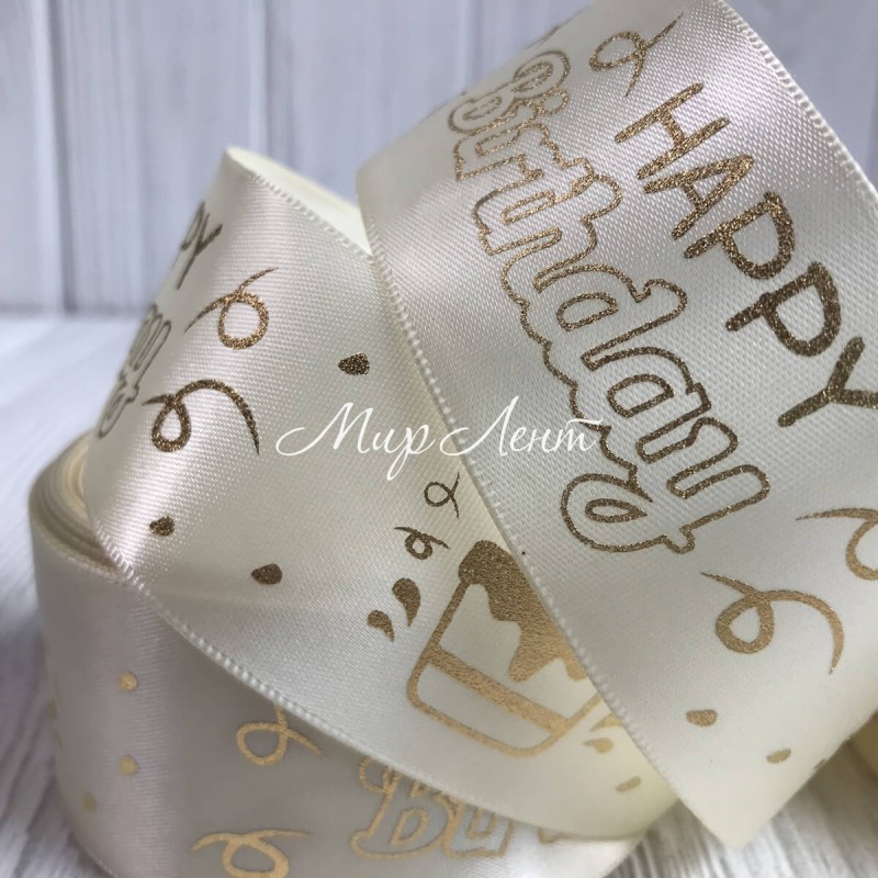 Атлас Happy Birthday, 4 см, світло-пудровий, метр
