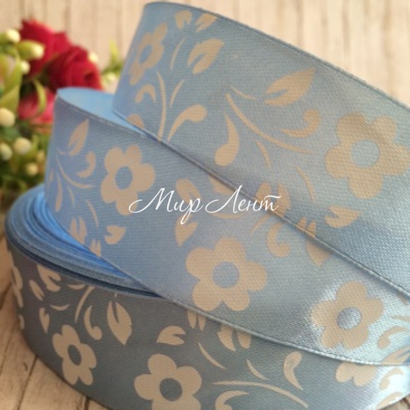 Атлас квітка-листик, 2,5 см, блакитний, метр