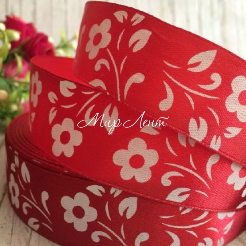 Атлас квітка-листик, 2,5 см, червоний, метр