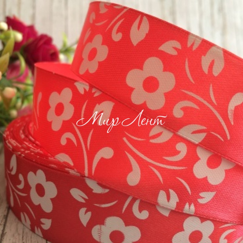 - Модель: Атлас цветок-листик, 2,5 см, ярко-коралловый