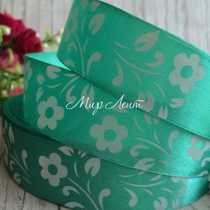 Атлас квітка-листик, 2,5 см, морська хвиля, метр