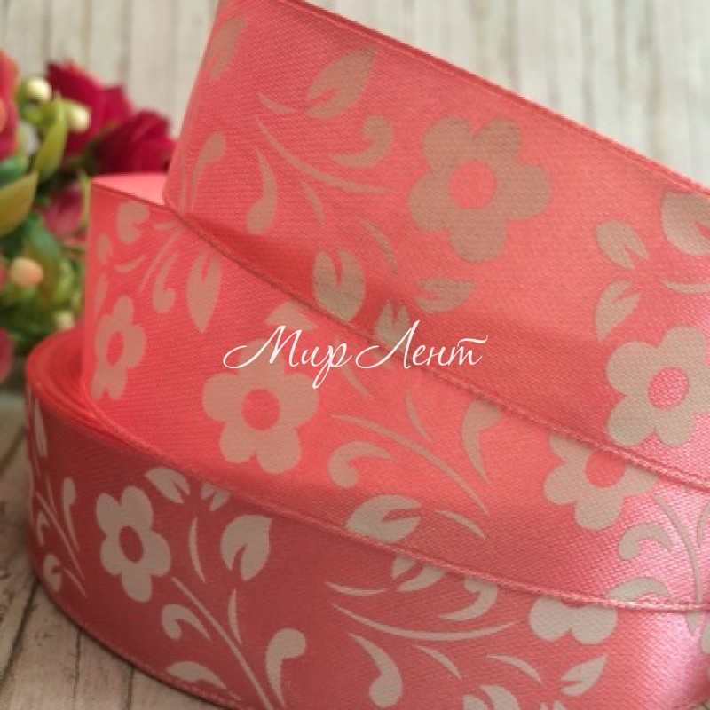 - Модель: Атлас цветок-листик, 2,5 см, светло-коралловый