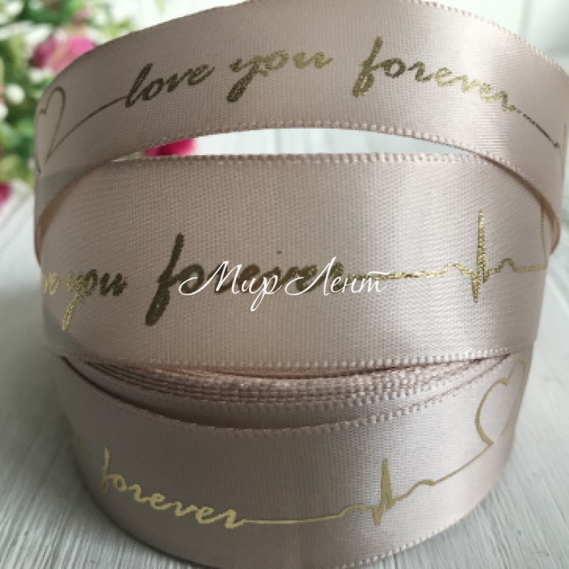 Атлас Love you forever, 2,5 см, бежевий, метр
