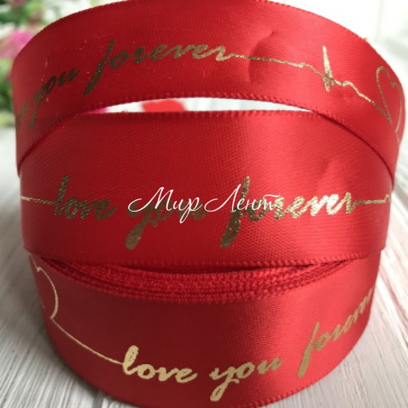 Атлас Love you forever, 2,5 см, червоний, метр