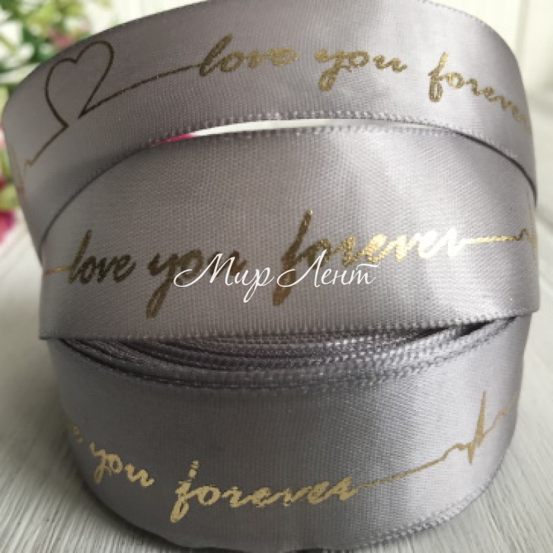 Атлас Love you forever, 2,5 см, бургунді, метр