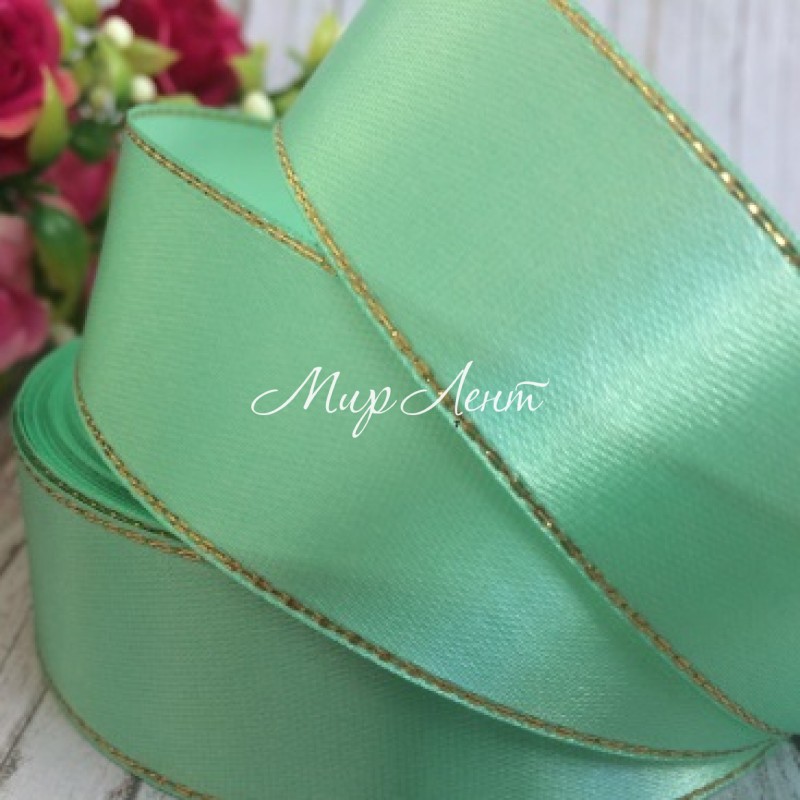 Атлас з люрексом 2,5 см (золото), тиффані, рулон 33 м