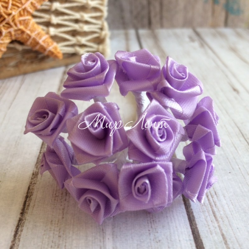 - Модель: Атласная розочка на проволочке, 1,5 см, лиловая, пучек из 12 цве
