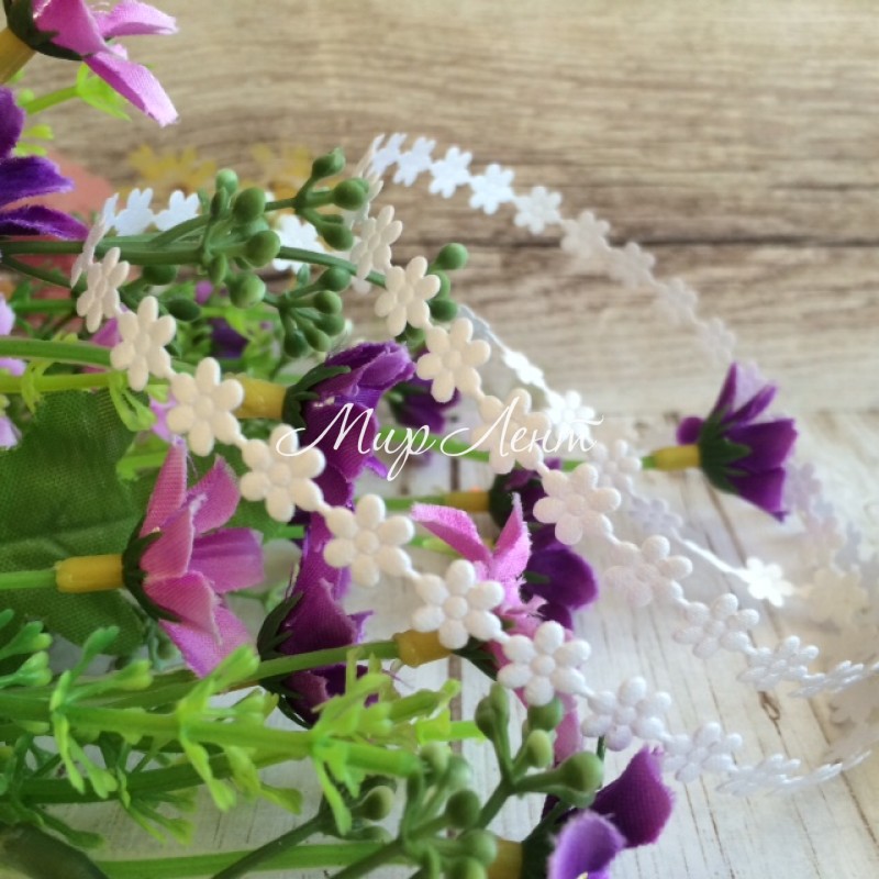 Ажурна атласна стрічка, маленька квіточка, 8 мм, білий, метр