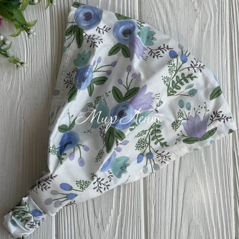 Бандана котова з квітами, 24х20 см, біло-блакитна, шт.
