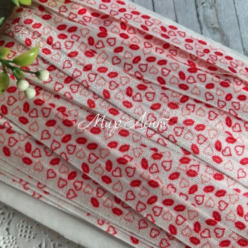 Бейка стрейчева, 1,5 см, червоні губки та серця, білий