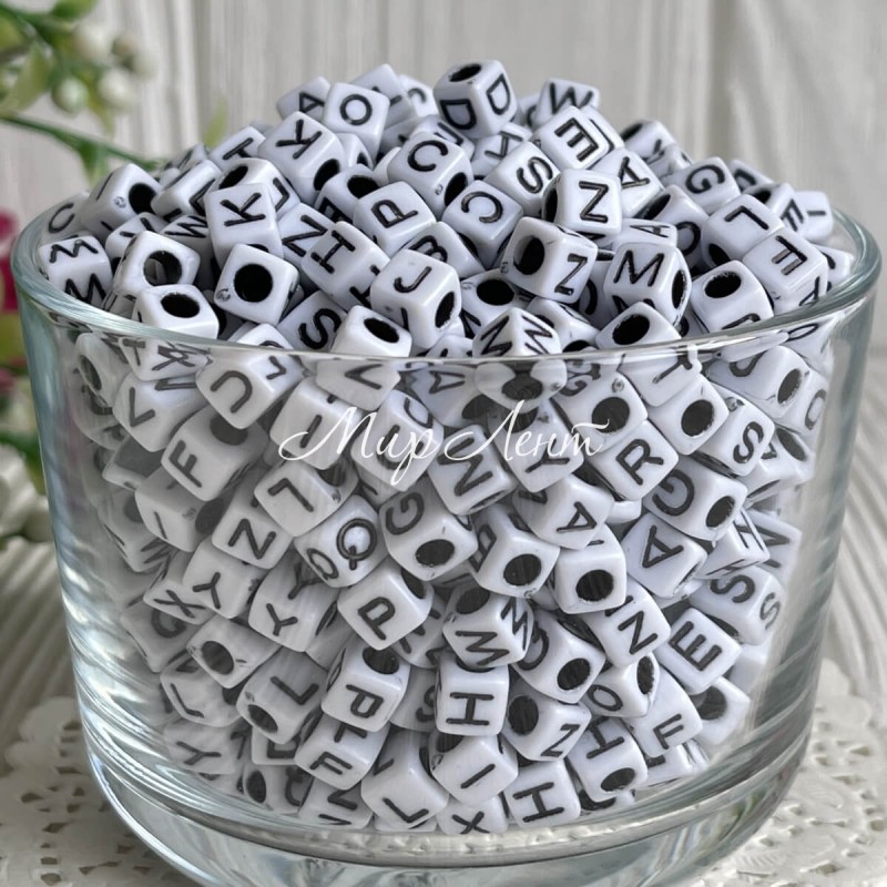 Бусина буква, 6 мм, квадрат (біло-чорна), маленький пакет 100 г