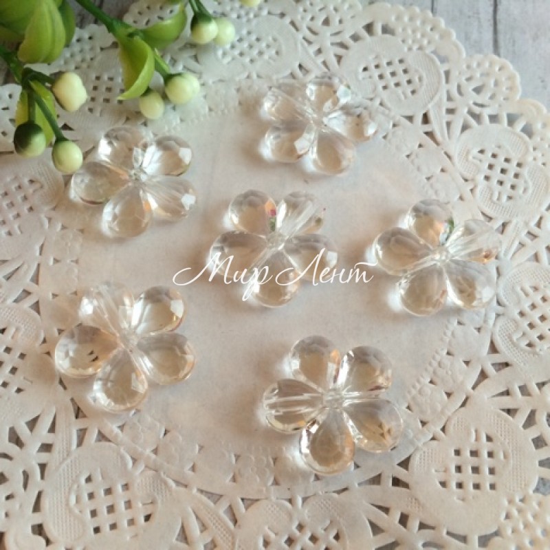 - Модель: Бусина цветок прозрачный, 2 см, прозрачный, шт.