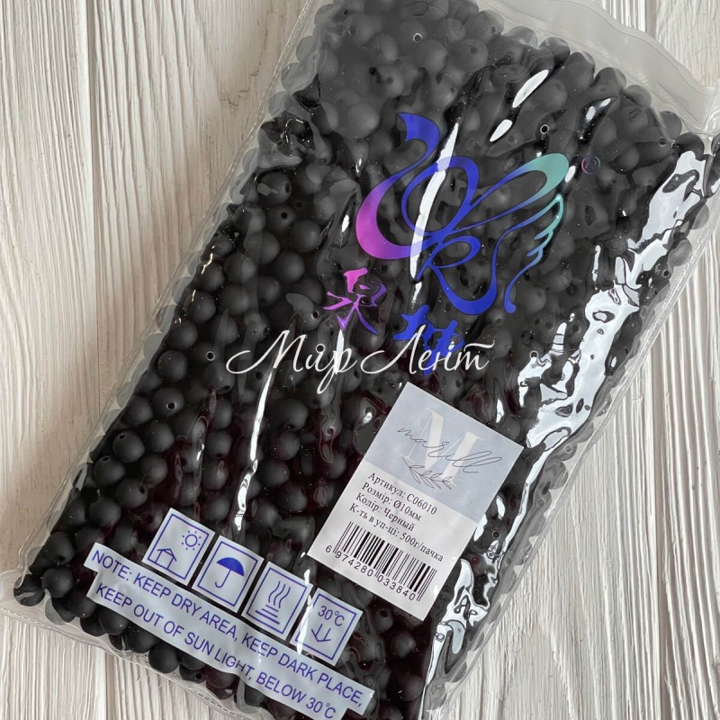 Бусина матова "Зефірка", 8 мм, чорна, шт.