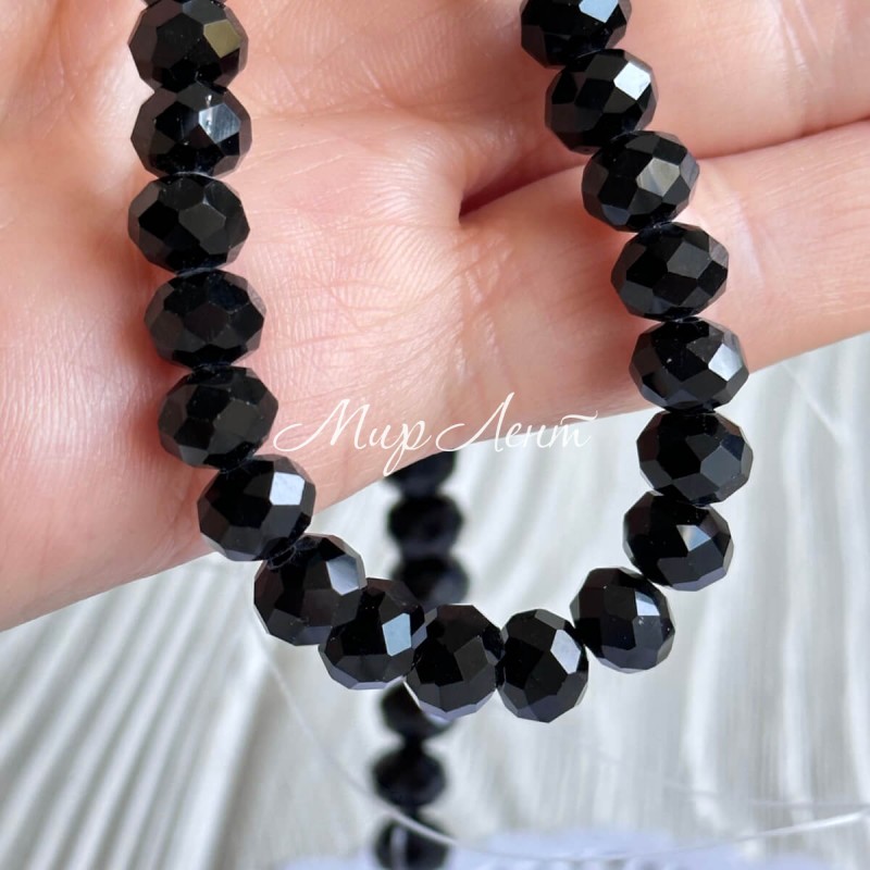 Бусини Рондель хрусталь, 8 мм, чорні, нитка 65-68 шт.
