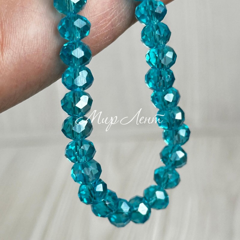 Бусини Рондель кришталь, 8 мм, світло-бірюзові, нитка 65-68 шт.
