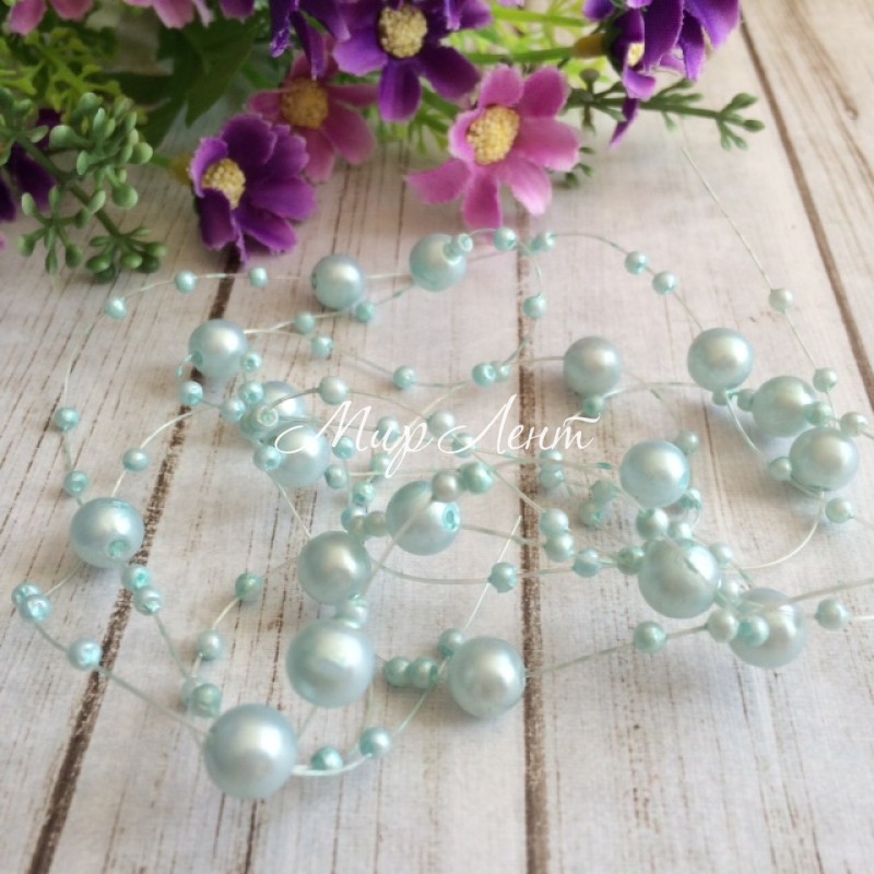 Намистини на волосіні, 8 мм, ніжно-блакитні, довжина нитки 1,3 м