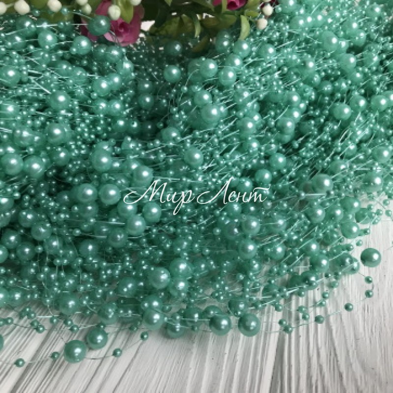 Намистини на волосіні, 8 мм, тиффані, довжина нитки 1,3 м