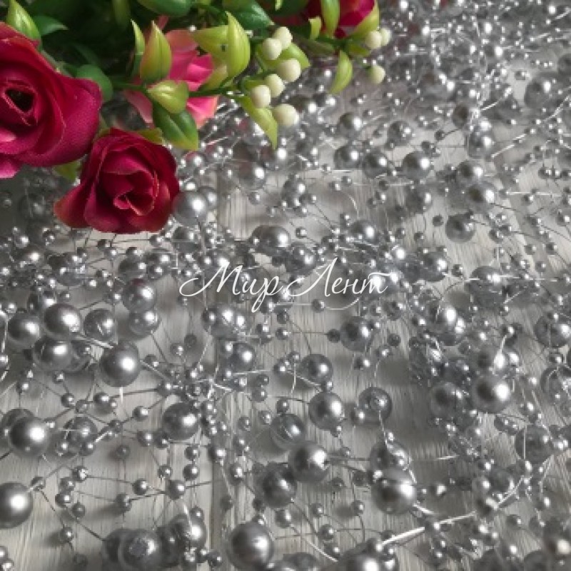 Намистини на волосіні, 8 мм, срібло, довжина нитки 1,3 м