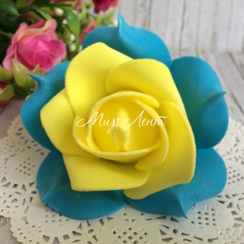 Бутон троянди, 6,5 см, жовто-блакитний