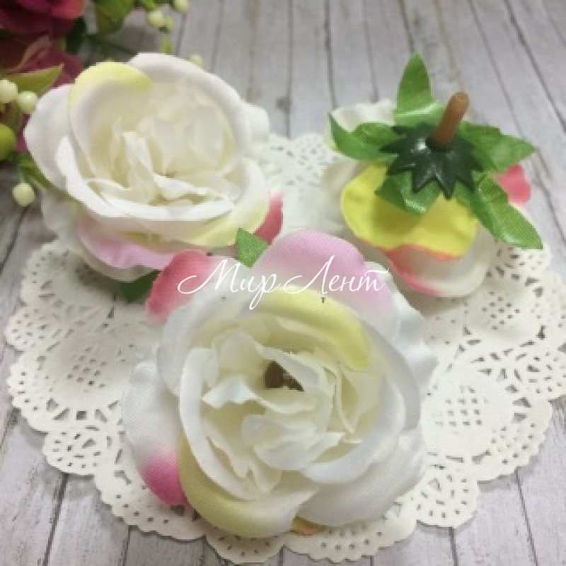 - Модель: Бутон розы тканевый, 5 см, бело-розовый