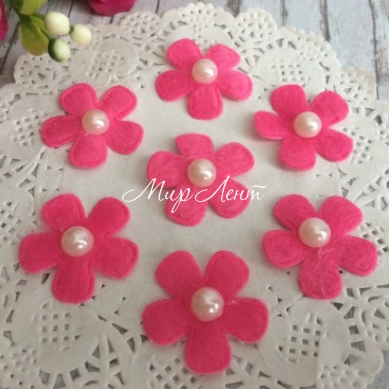 Квіточка з фетру з перлами, 2,5 см, яскраво-рожева