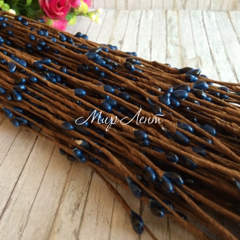 Декоративна гілочка з тичинками, 40 см, сапфірова