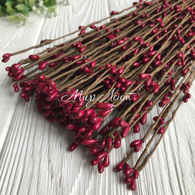 Декоративна гілочка з тичинками, 40 см, бургунді, шт.