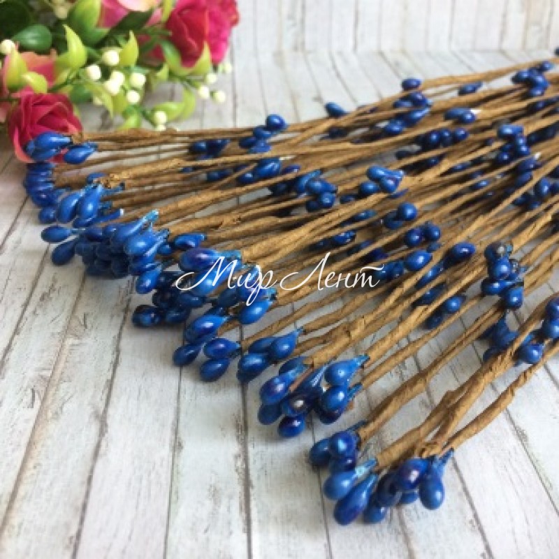 Декоративна гілочка з тичинками, 40 см, темно-синя