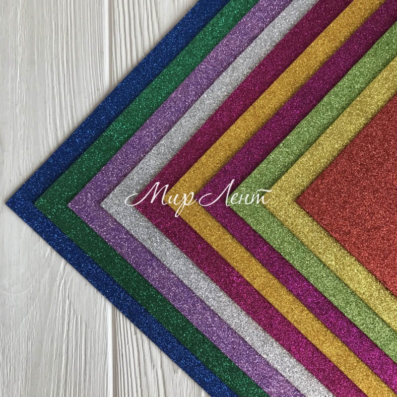Фоаміран із глітерром, 1,8 мм, різнобарвний мікс, 20х30 см, упаковка 10 шт.