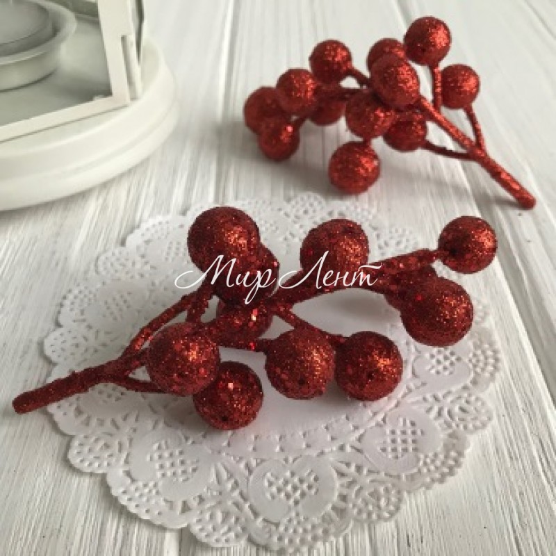 Гілочка з ягідками у гліттері, 11,5 см, червоний, шт.