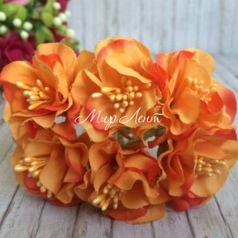 - Модель: Хризантема (тканевая), 4,5 см, оранжево-красная