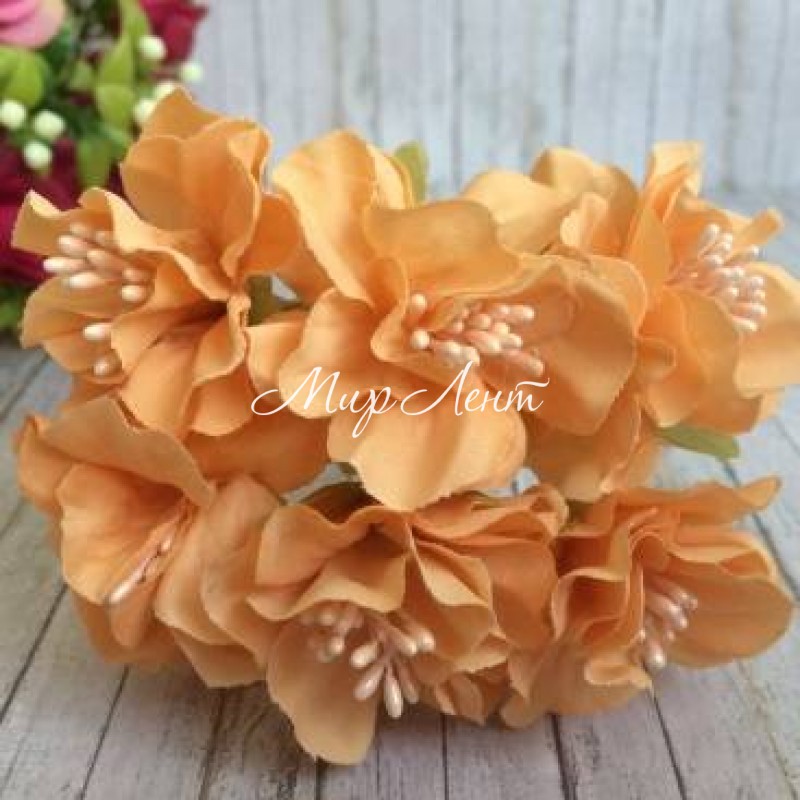 Троянда тканинна, 2 см, темний персик, пучок