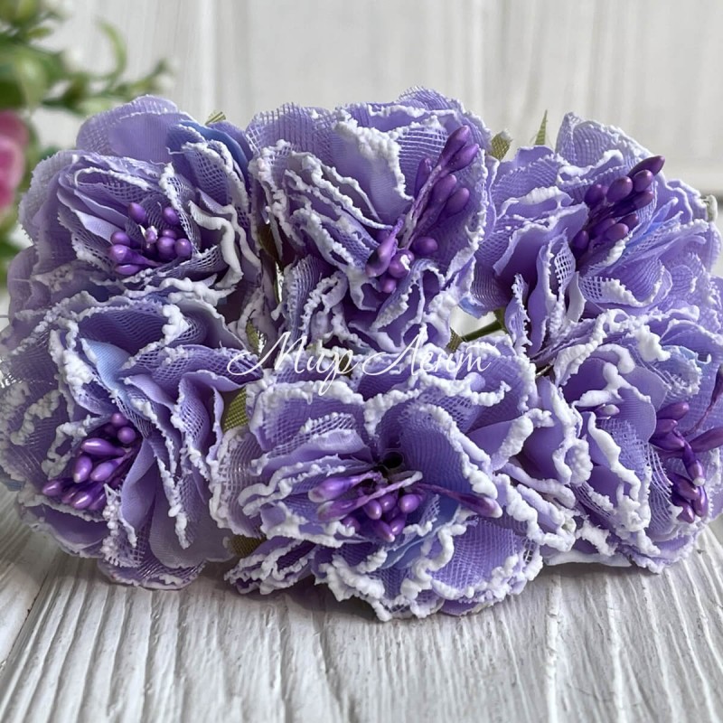 Хризантема тканинна з білим кантом, 4,5 см, лілова, пучок