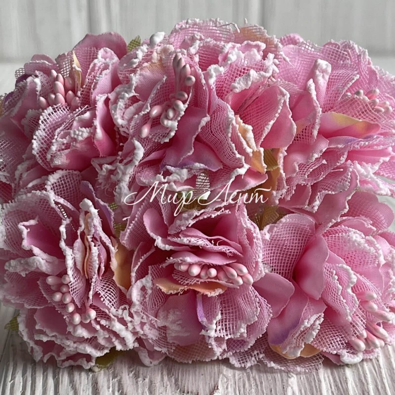 Хризантема тканинна з білим кантом, 4,5 см, рожева, пучок
