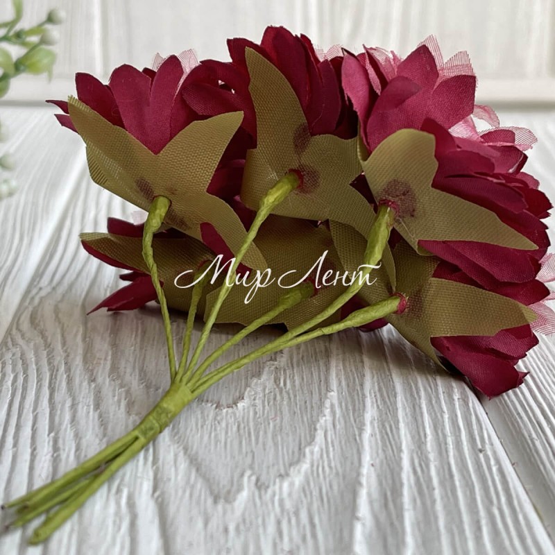 Хризантема тканинна з фатином, 4 см, бергунді, пучок