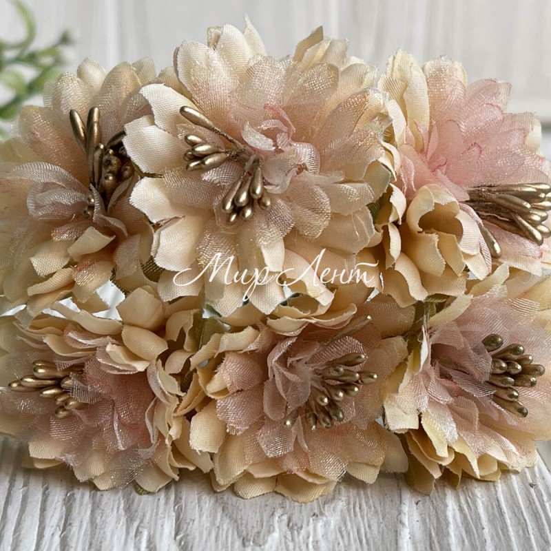 Хризантема тканинна з фатином, 4 см, молочно-персикова, пучок