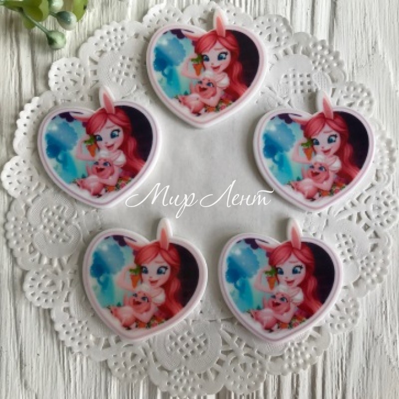 Кабошон Enchantimals, 3,5 см, серце із кроликом, шт.