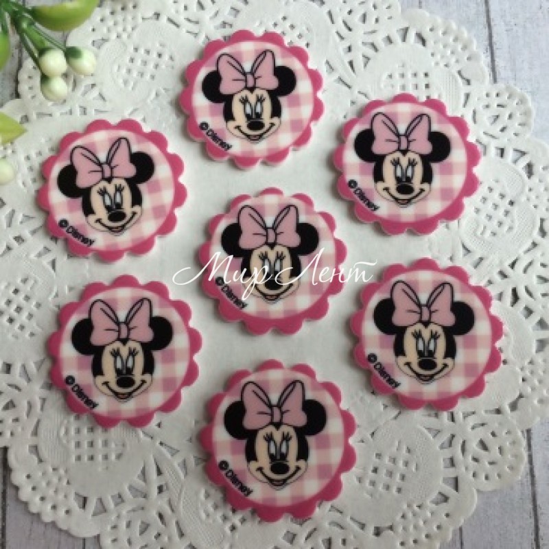 Кабошон круглий, Мінні з бантом, 2,6 см, рожева клітка