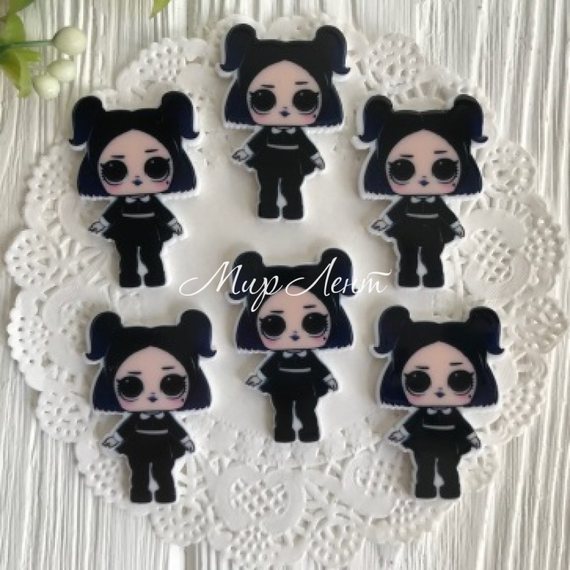 Кабошон Lol, з чорним волоссям та чорним костюмом, 4х2,7 см
