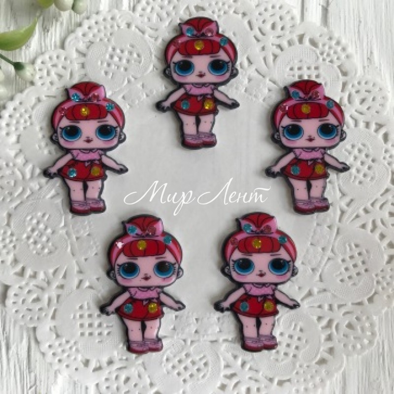 Кабошон Lol зі стразами, 3,5 см, у шортах червоних та з гулькою, шт.