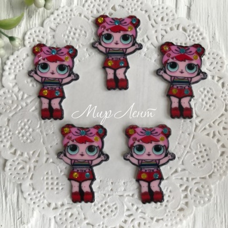 Кабошон Lol зі стразами, 3,5 см, в малинових шортах і з хвостиками, шт.