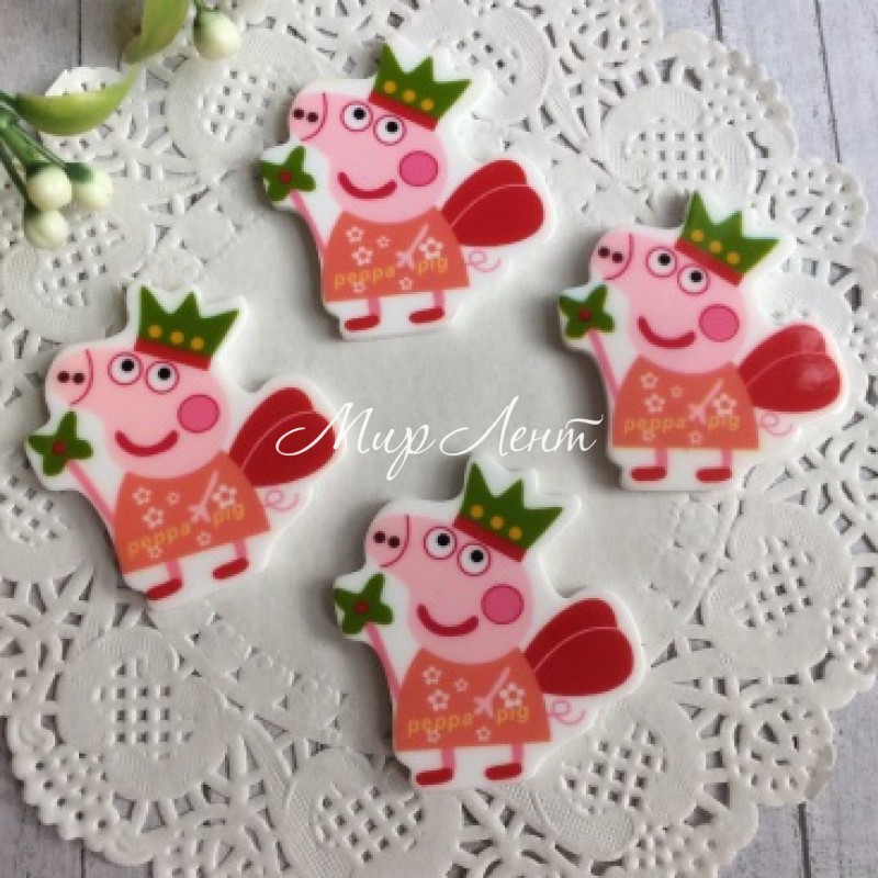 Кабошон, Свинка Пеппа фея, 3,4х2,7 см, з оливковою короною та чарівною паличкою