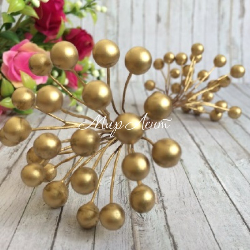Гілочка з ягідками у гліттері, 11,5 см, золото, шт.