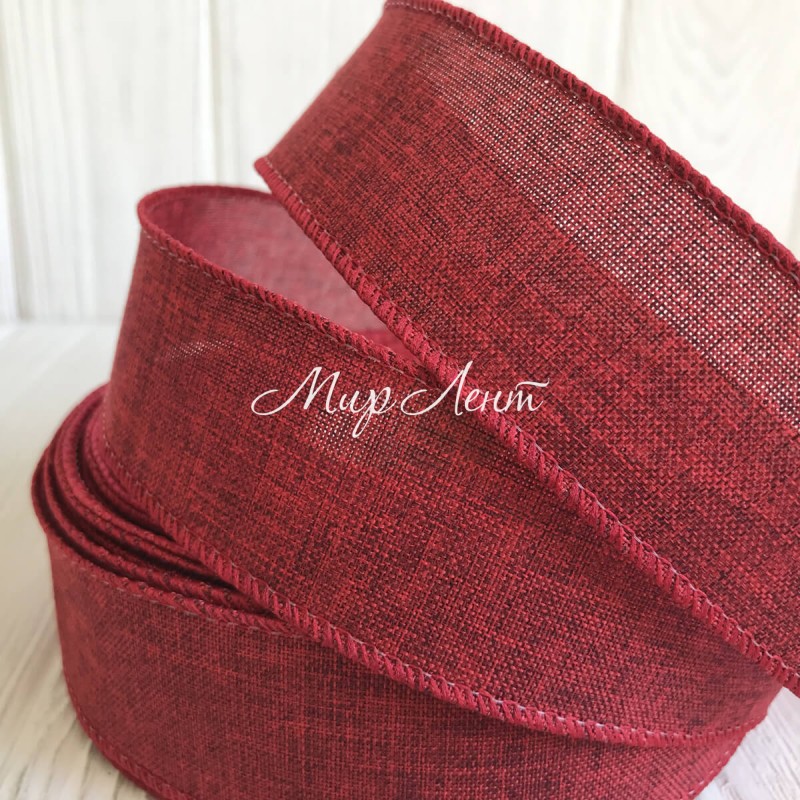 Котонова стрічка з дротяним кантом, 3,8 см, бордова, метр